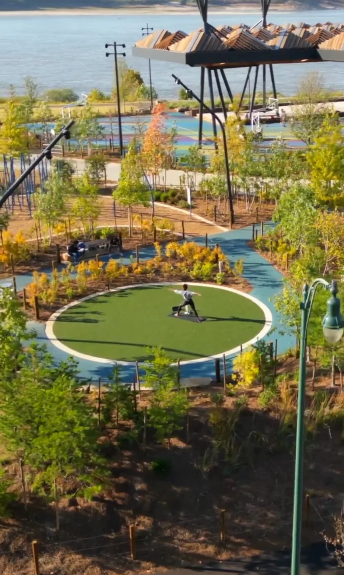 A whimsical outdoor play space filled with treehouses, splash pads, and gardens designed to spark kids’ imagination.