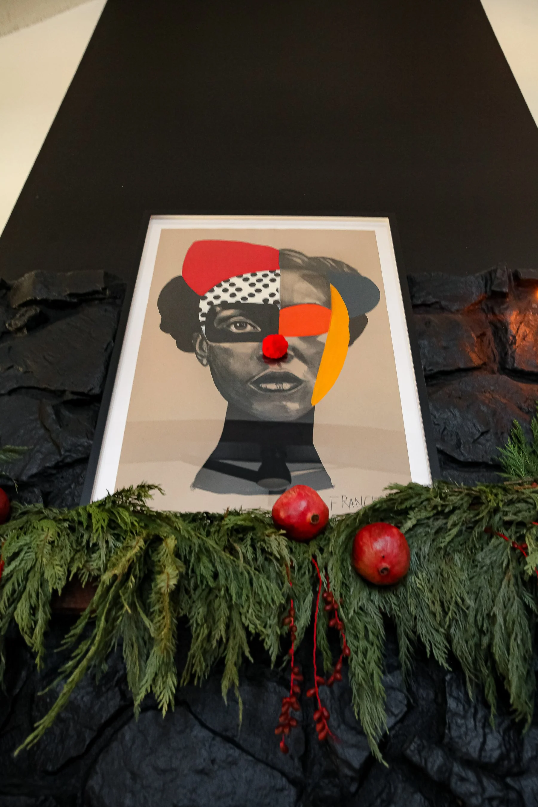 • Tapered candles that matched the red tones in the artwork