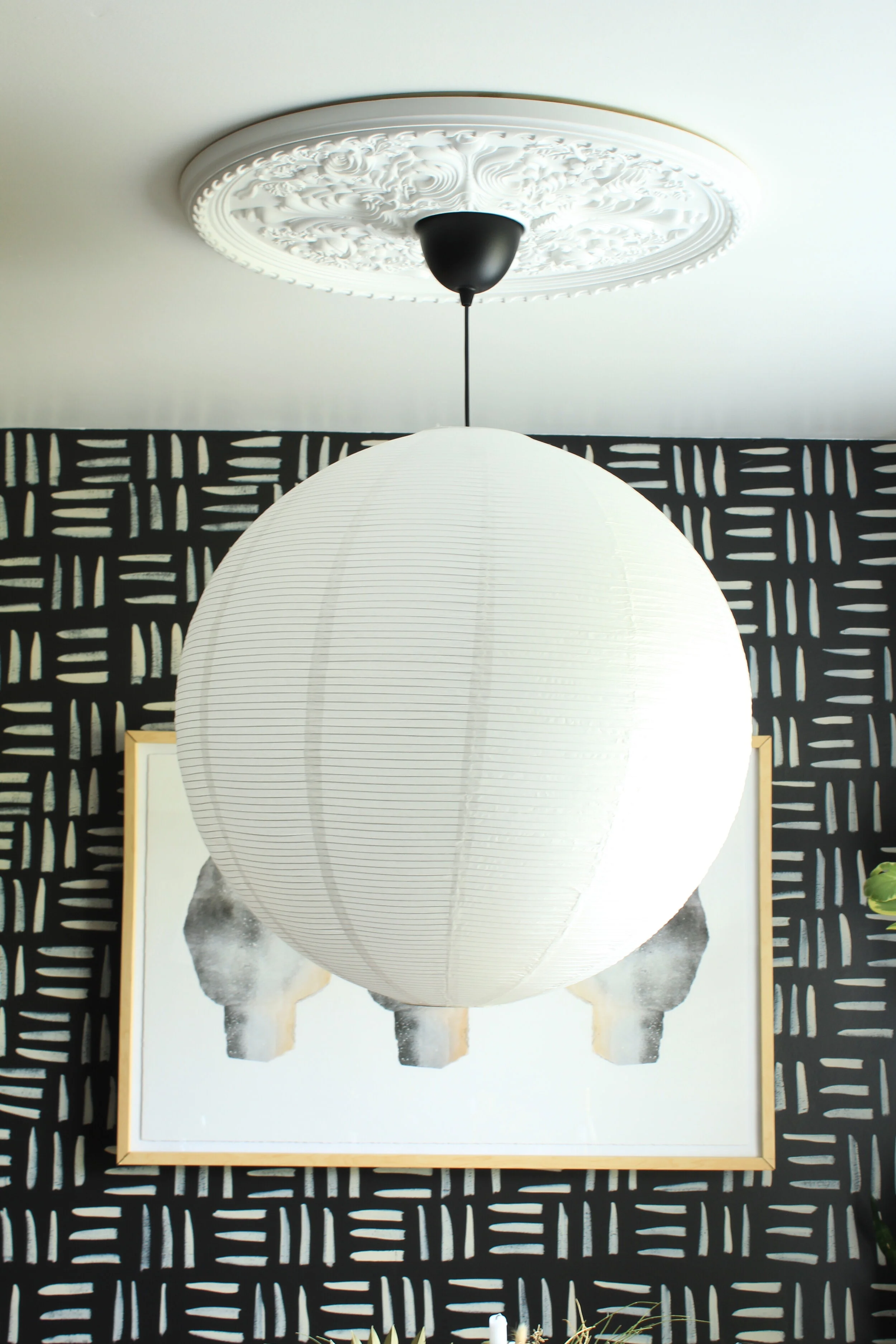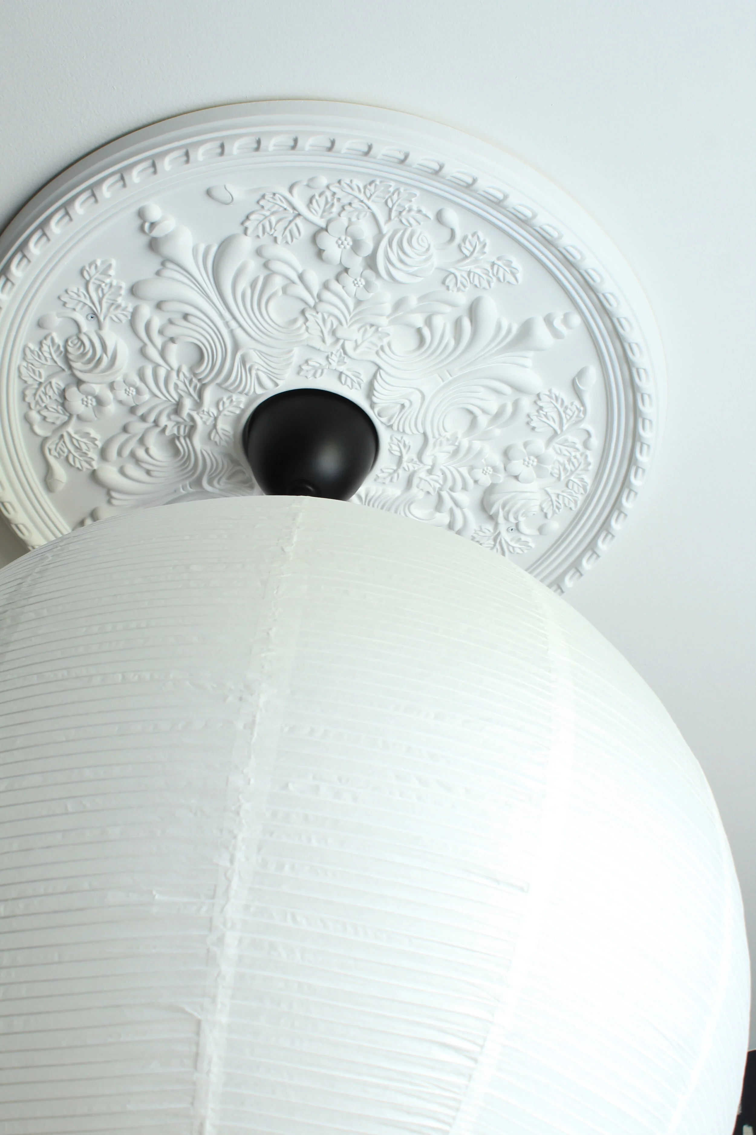 Once the ceiling had a fresh coat of white paint (Behr Ultra Bright White), I wanted to add some interest. I’ve always loved the look of modern, Parisian interiors and a good majority of them have beautifully ornate ceiling medallions. I thought it would be the perfect touch to elevate the super simple light fixture! It was super easy to install (I’ll be back to tell you all about how it went in another post).