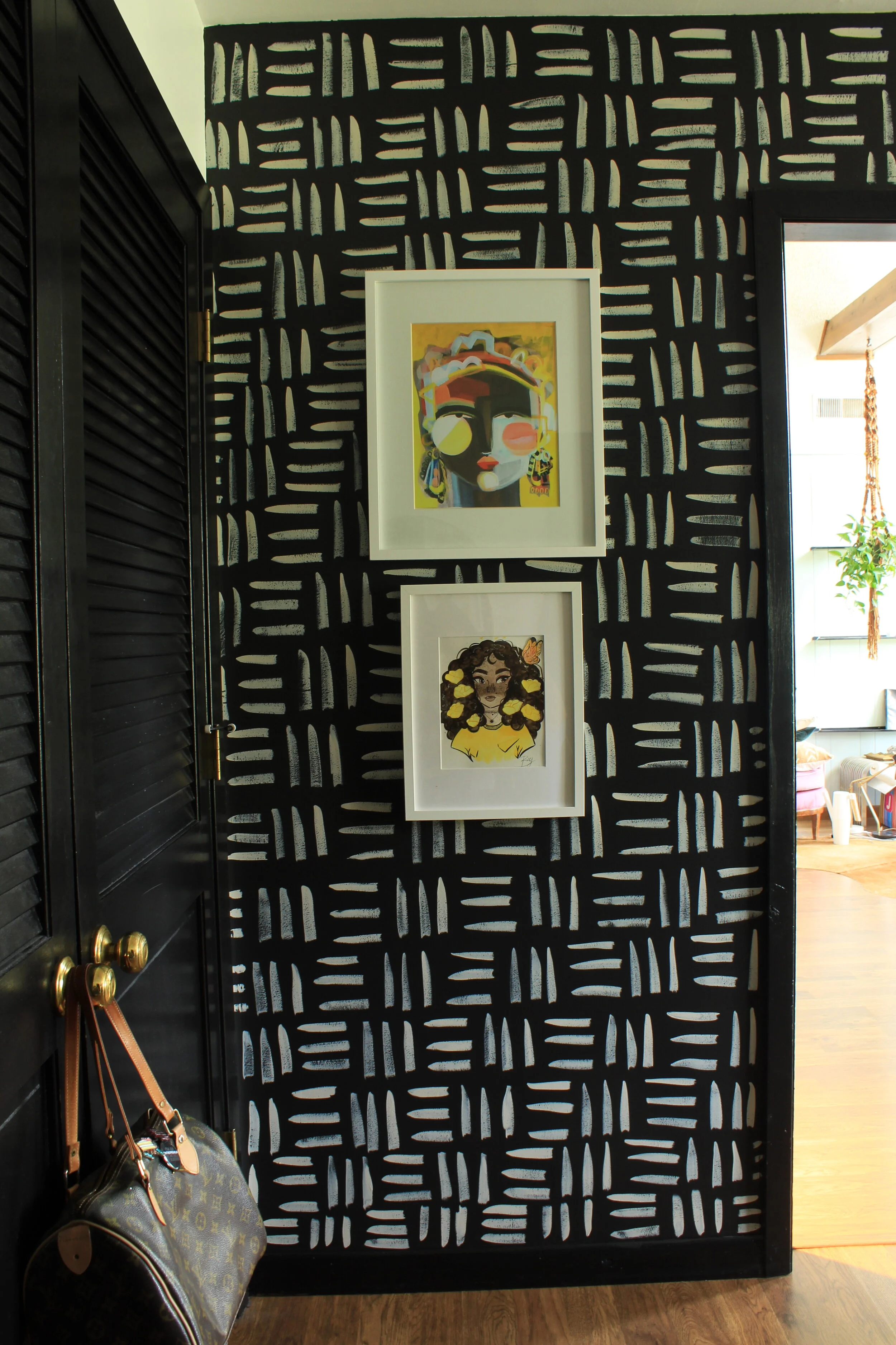 Most of you saw the entire process of the accent wall come to life. In case you missed it, just click here to see how I came up with the design, how I decided on the colors, what I used and a fun hyper-lapse video of me actually painting the design.